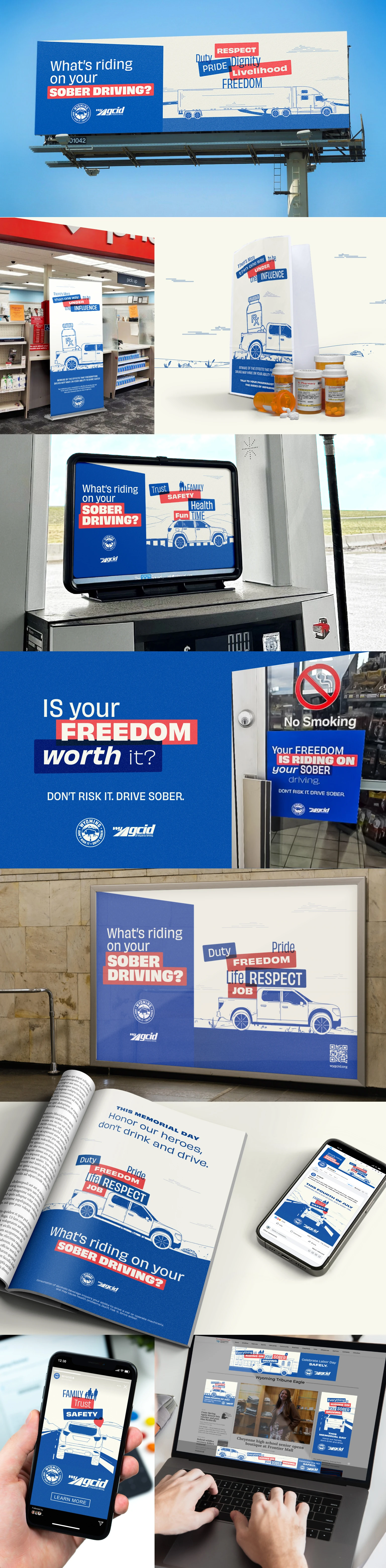 Getting people to change a culturally accepted behavior is a challenging task. Before we could even begin our creative concepting, we had to figure what—if anything—would motivate our audience to stop driving under the influence. So, we asked them. Through our six statewide listening sessions, we learned directly from Wyoming residents which factors would make them think twice before getting behind the wheel after consuming alcohol. When it came down to it, family, career, freedom, and duty topped the list. We also learned that 50% of fatalities in WY involve non-residents, and we need to target our campaign at tourists, as well as people who are just passing through, such as commercial truck drivers. Armed with these insights we created a campaign (and a damn-catchy tune) that included video, radio, digital, and OOH aimed at changing social norms while encouraging people to ask themselves, “What’s riding on your sober driving?”